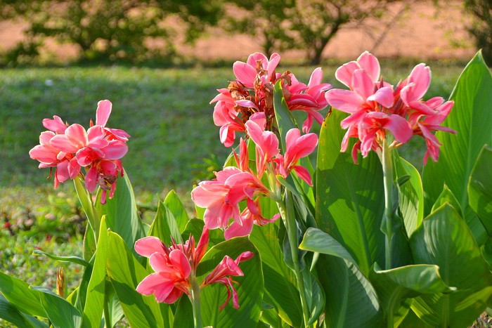 множеством цветов, среди которых выделялись разноцветные канны;