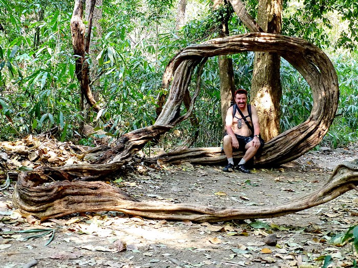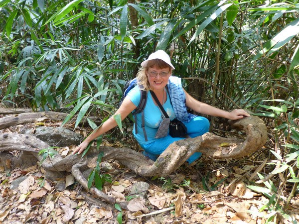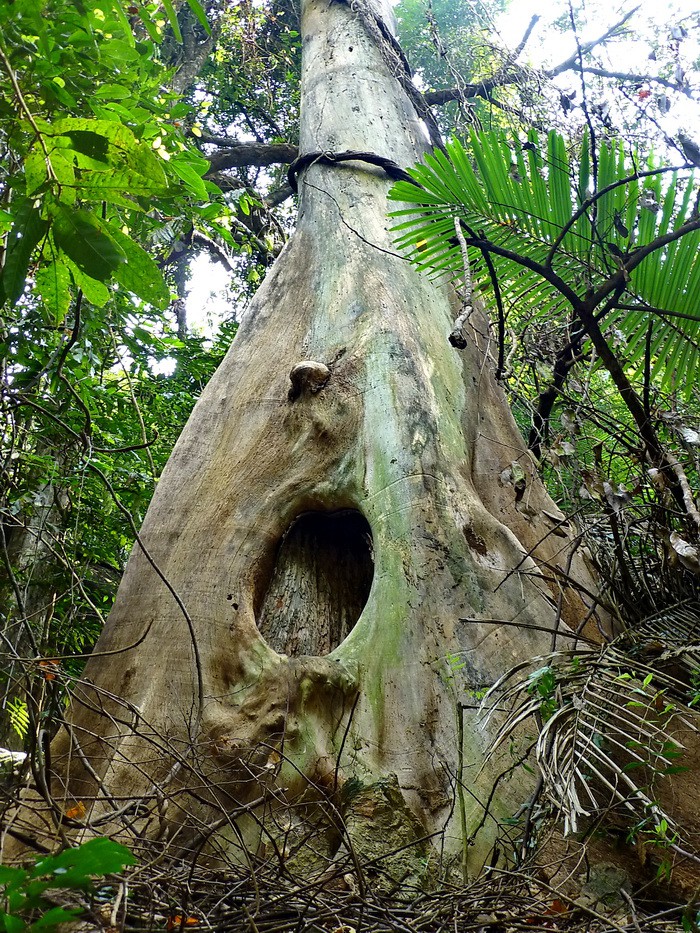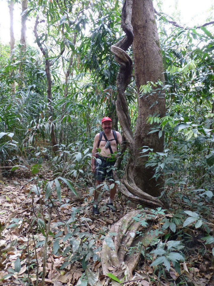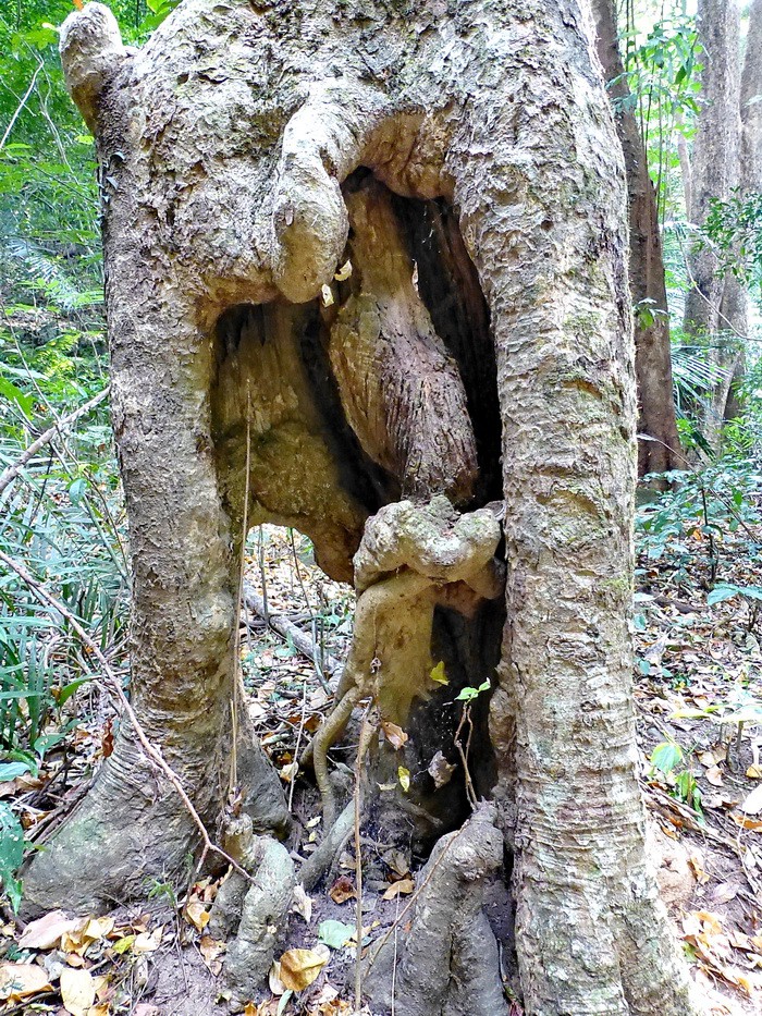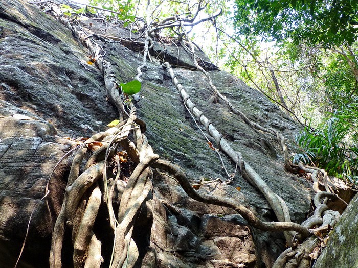 Очень толстые вьющиеся лианы удивительным образом оплели камни и скалы, деревья и пни.