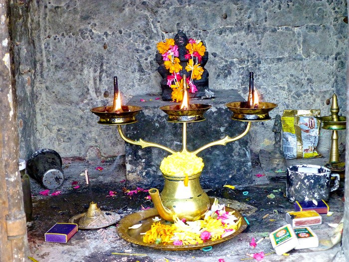 Лес здесь называется шола. Появилось солнышко и быстро потеплело. Примечательно, что даже в горной местности встречаются вдоль дороги маленькие святилища индуистских богов.