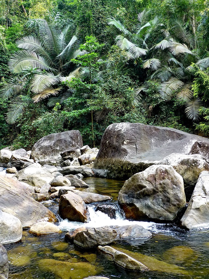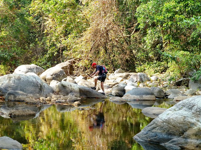 Felichita начинает купаться, а я получаю удовольствие, лазая на животе по скользким камням, перепрыгивая с камня на камень в абсолютно диких джунглях.