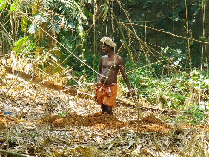 Что есть сил, поднимаемся по крутому склону, выбегаем на главную тропу, и немного возбуждённые, быстрым шагом доходим до маленькой деревушки на асфальтированной дороге. Ожидая проходящий автобус, жуём жареные бананы, запивая чаем-масала. Местные жители трудятся в джунглях,