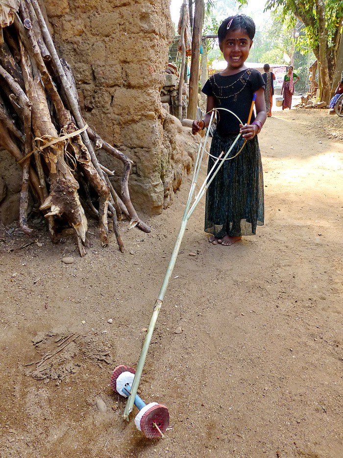 Дети играются самодельными игрушками,