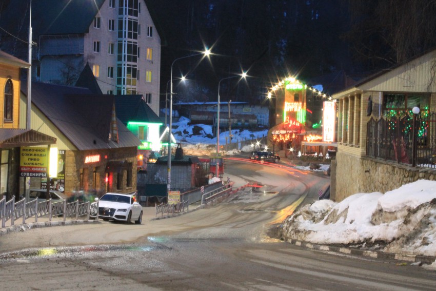 Фактически въезд в Домбай и конец дороги с права на кресте скоро будет название поселка