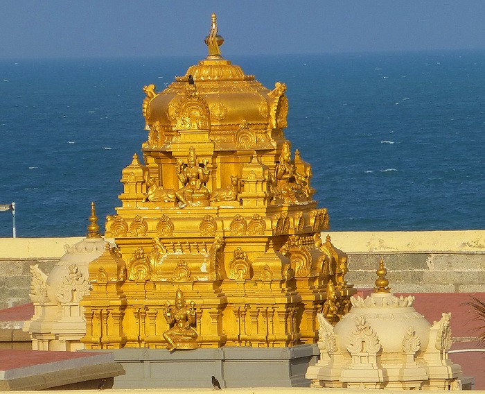 Жара, духота. Долго ищем подходящий отель, а потом ресторан морепродуктов. Гуляем по городку. Любопытно было заглянуть в храм Кумари Амман – олицетворение великой богини Деви, в одиночку захватившей демонов и обеспечивший свободу миру. В этом месте паломники воздают хвалу в красивом разукрашенном храме, где слышан шум разбивающихся волн трёх океанов сквозь потрескивание масляных факелов.