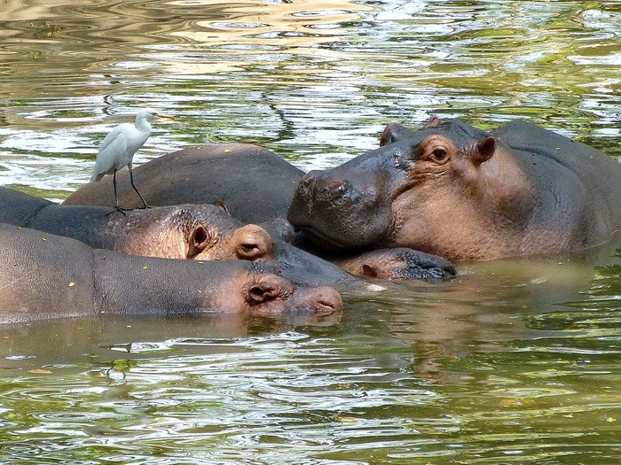 Слоны, носороги, гиппопотамы, зебры, разные виды оленей, крокодилы и много других животных.