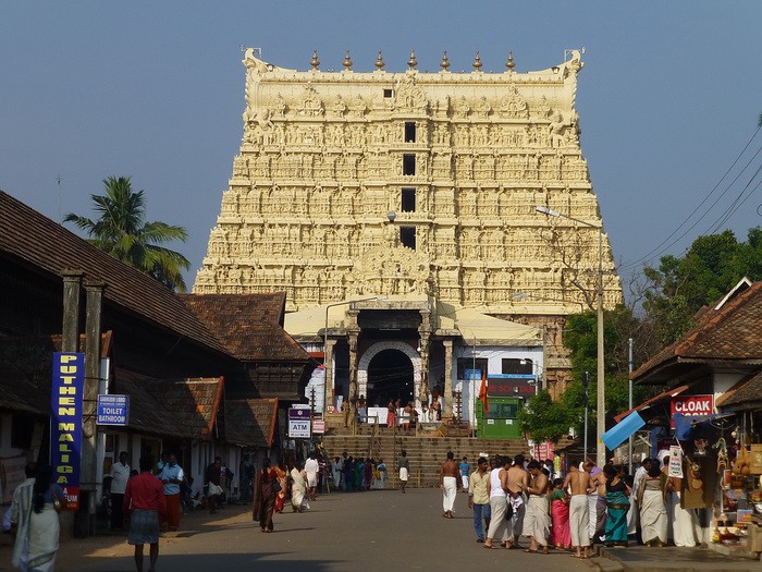 Утром едем на моторикше во дворец Путхе Малига и храм Шри Падманабхасвами. Первый очень понравился: интересная резьба по дереву, хрустальный трон, трон из слоновьих бивней, много старых картин индийских махараджей, древнее оружие. Фотографировать внутри строго запрещено. Фотография снаружи ничего не передаёт,