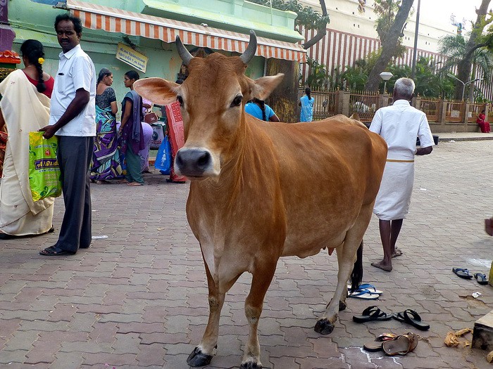 На дороге часто попадаются священные для Индии коровы и слоны.