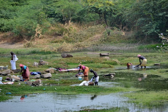 Спустившись с холма, мы заметили как местные жители стирают бельё в мелководном озере!