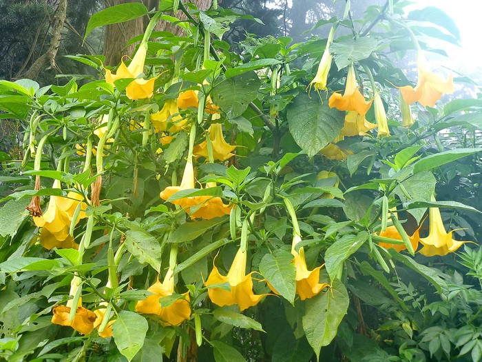 огромные кусты белей и жёлтой датуры, или дурмана. Это растение принадлежит к семейству паслёновых, как и помидоры, баклажаны и т.п.