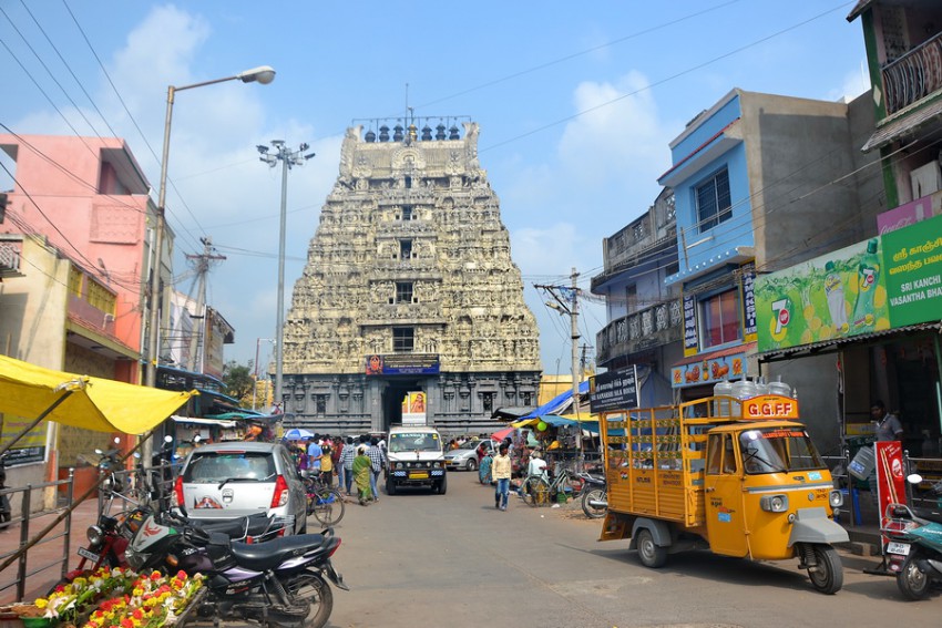 Переезжаем в Канчипурам – типичный для Тамилнада город-храм; современная Индия в её фанатично-религиозном проявлении, с храмами из камней, которых поистине веет историей. Это также центр производства шёлка и известен своими высококачественными сари.