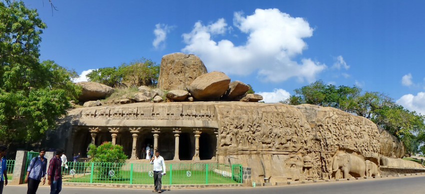Мамалапурам – следующее пункт нашего путешествия. Это небольшой городишко занесён ЮНЕСКО в список всемирного наследия человечества благодаря многочисленным барельефным изображением сцен из жизни древних жителей этого района ( Паллавов) и индийского эпоса «Рамаяны» и «Махабхараты», особенно героя Арджуны.