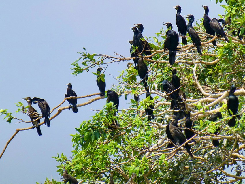 Посетили птичий заповедник — места гнездовья множества водоплавающих птиц. Это большое озеро с маленькими островами, обрамлёнными тропическими деревьями, на которых гнездятся птицы.