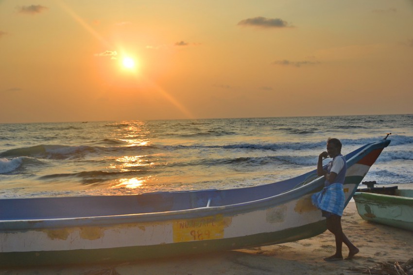 На другое утро встречаем на море рассвет. Рыбаки распутывают сети,