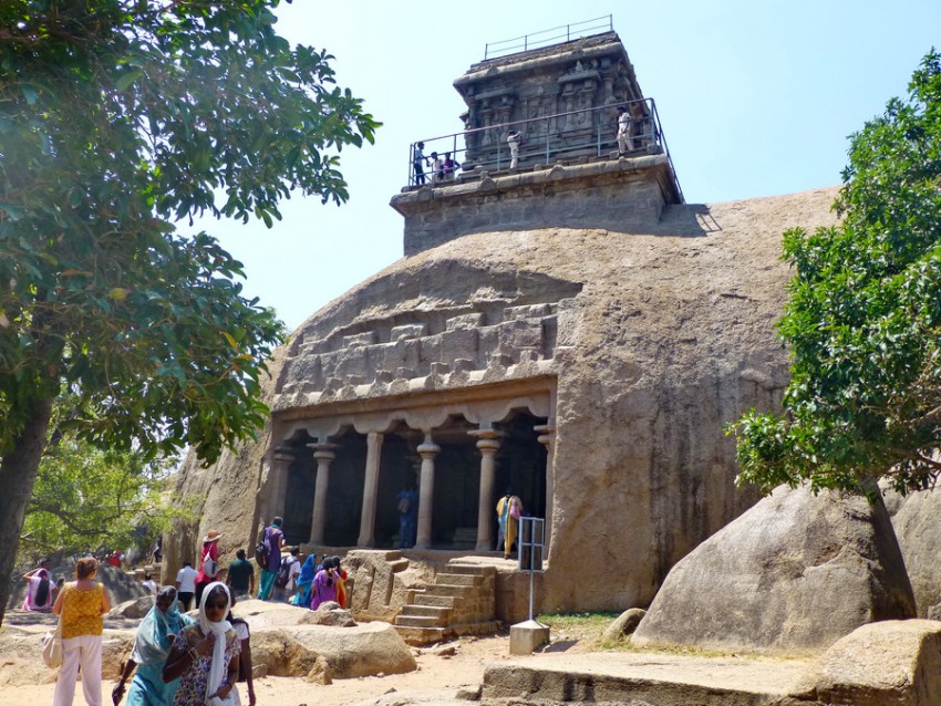 На другой день на тук-туке осмотрели храм на скале (Rock Fort). Древнюю скалу высотой 83 м рассекли религиозно настроенные Паллавы, которые вырубали маленькие пещерные храмы с южной стороны.