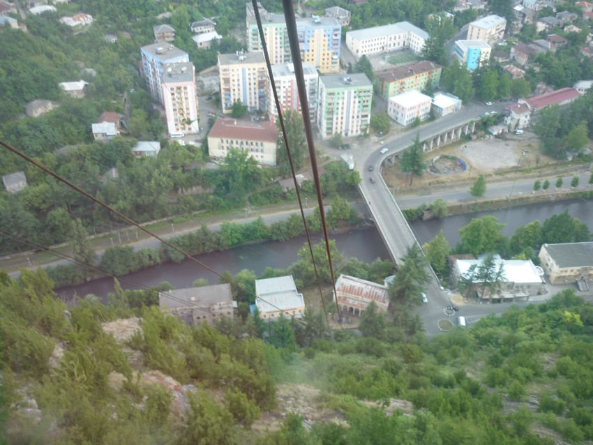 Чиатура — город известный своими марганцевыми месторождениями, о них даже Троцкий в своей книге упоминает. Ну, а канатки будем искать — где они и сколько их. С помощью местных таксистов подъезжаем к одной станции канатной дороги. Вагончики от нее поднимаются в двух направлениях. Использовались канатные дороги не для перевоза туристов, а для подъема рабочих на рудники. Рабочих не видно, а катаются местные, да редкие ненормальные туристы, типа нас. Стоимость? — да нет никакой стоимости, катайся просто так сколько хочешь.