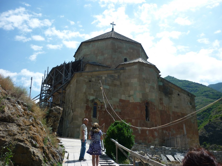 Атенский Сион — храм построенный в начале 7 века. По преданию именно здесь возникла грузинская письменность, о которой я упоминал в начале рассказа. Где-то внутри на фресках сохранились надписи на шрифтах хуцури и мхедрули. Но, к сожалению, храм на реставрации и внутрь мы не попали.