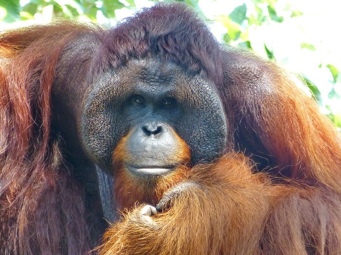 Разглядываем водопад поближе. Ходим по камням. Хотим искупаться в его хрустальных водах. Да не тут то и было. Неожиданное появление этой мохнатой обезьянки нас насторожило. Это был орангутанг. Безобидная обезьянка, если её не дразнить.