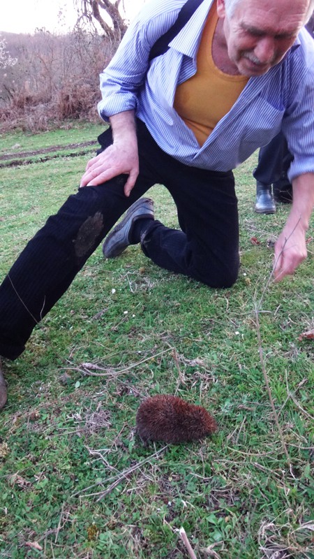 Налюбовавшись водопадом, цебельдинскими полями возвращаемся к машине, по дороге пофотографировав какого-то необычного коричневого ёжика.