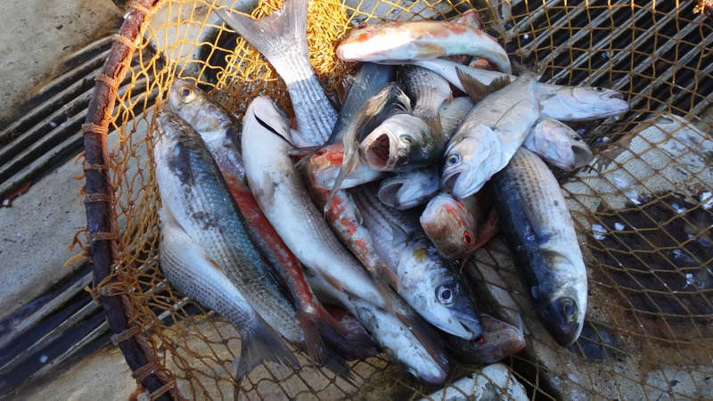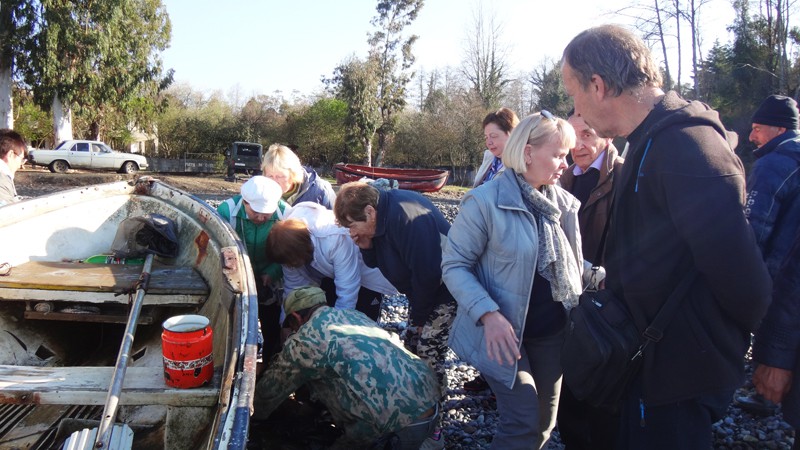 В это раннее время возвращаются с моря абхазы-рыбаки с уловом. Естественно, туристы накинулись на свежую рыбу по цене вдвое меньшей, чем у нас в Сочи.