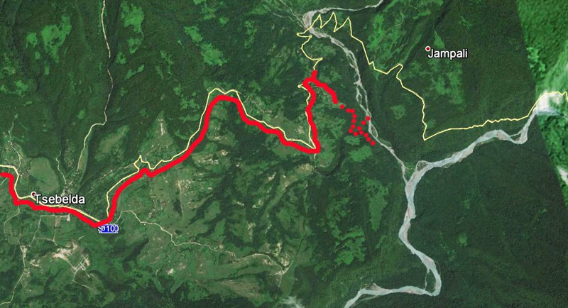 Наконец после хорошей тряски прибываем в Цебельду. Местный житель, Самвел, согласившийся быть проводником, указал правильное направление к Шакуранскому водопаду. Оставив машину в небольшом хуторе, дальше идем пешком.