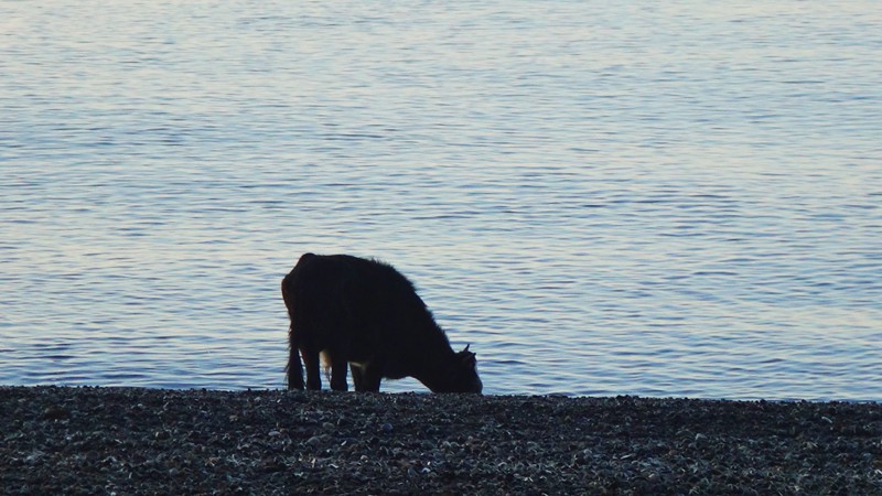 Утром на море идилия — длиннющие пляжи, которые пустые и в разгар сезона, и коровы, пьющие море.