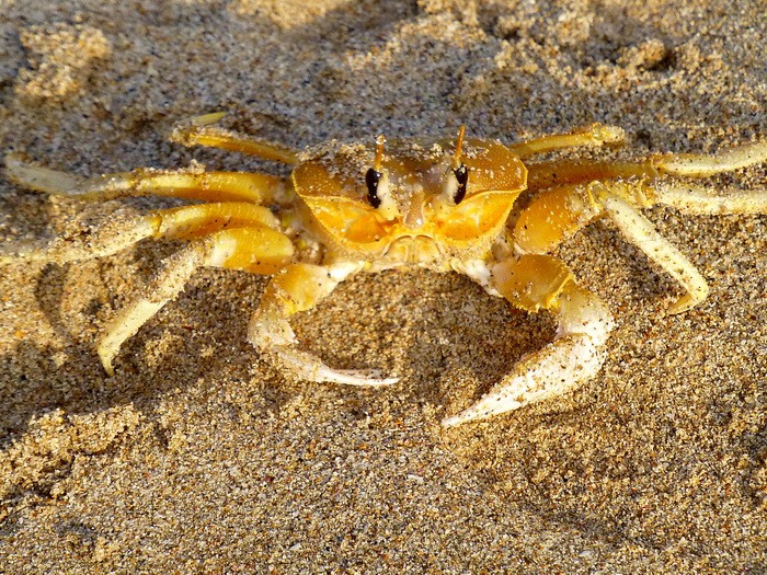 Мелкие крабики шустро бегают, скрываясь в своих норках при малейшей опасности. Вот кому можно позавидовать в быстроте реакции.