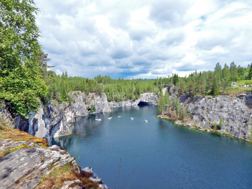 Гулять и наслаждаться видами вокруг мраморного карьера одно удовольствие. А из-за того, что северное лето не постоянно и погода в течении дня может меняться по несколько раз, то и освещение солнечными лучами карьеров буквально играет. Периодически освещая и оттеняя те или иные склоны бывшего мраморного карьера.