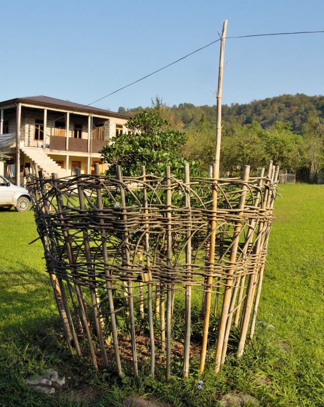 Тут посажено редчайшее дерево, которое привезли на родину предков мухаджиры из Сирии. Вероятность нахождения скота здесь почти нулевая, но все равно сделано ограждение на всякий пожарный.