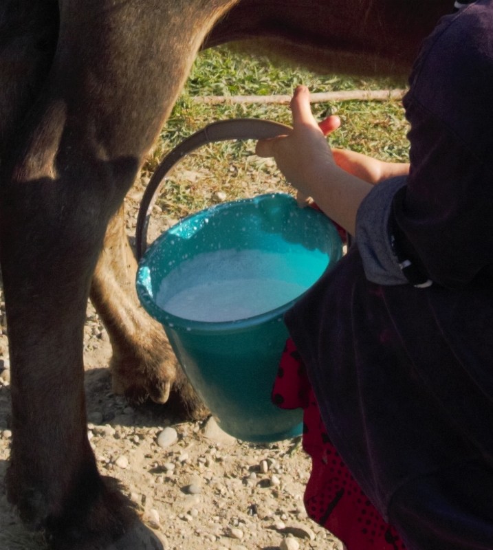 Дальше посетили другой дом, и еще, и еще… Впервые видел, как доят буйволицу с помощью теленка.