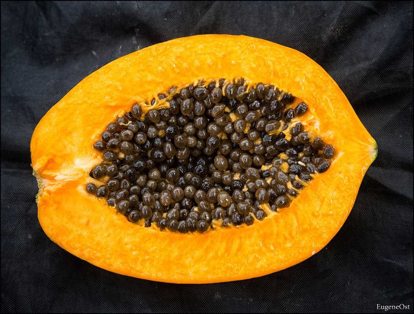 17. Сорвал небольшую папайю, оказалось плодовитой — «икры» полное пузо: о)