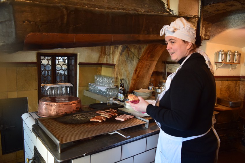 Есть в Регенсбурге удивительная закусочная – своеобразный действующий памятник кулинарному наследию города. Здание Исторической колбасной кухни (Historische Wurstkuchl) возле Каменного моста (Steinernen Brücke) существует девять веков. Заведение маленькое, честно говоря, похоже на какой-то сарайчик :)) и туда часто стоят очереди посетителей, готовить для вас колбаски будут прямо при входе, на гриле.