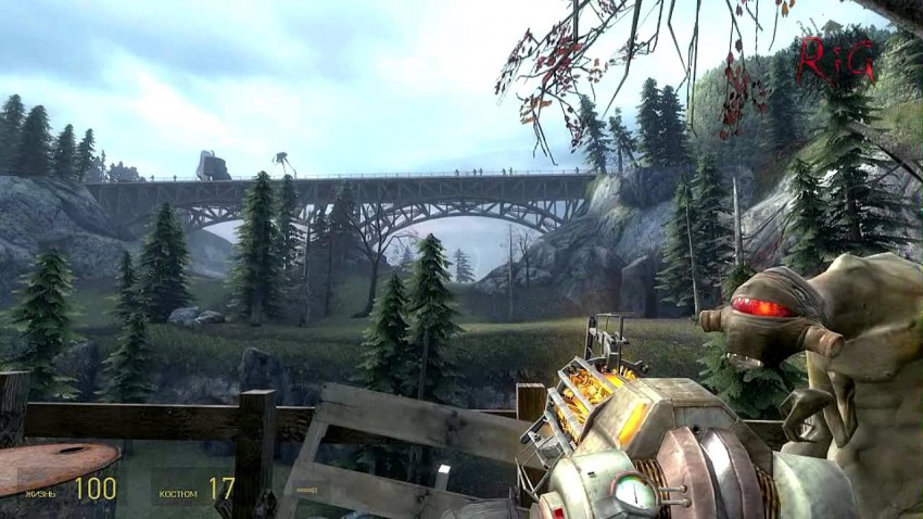 Доезжаем до вот этого моста, опору которого развернуло течением