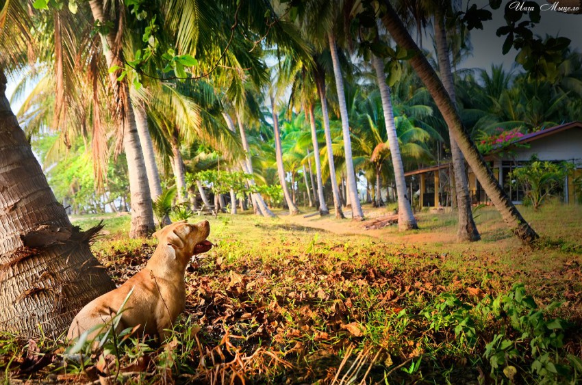 Пока мы снимали пейзажи на берегу и в море нас сопровождала хозяйская собака, которая до этого всю ночь нас охраняла…
