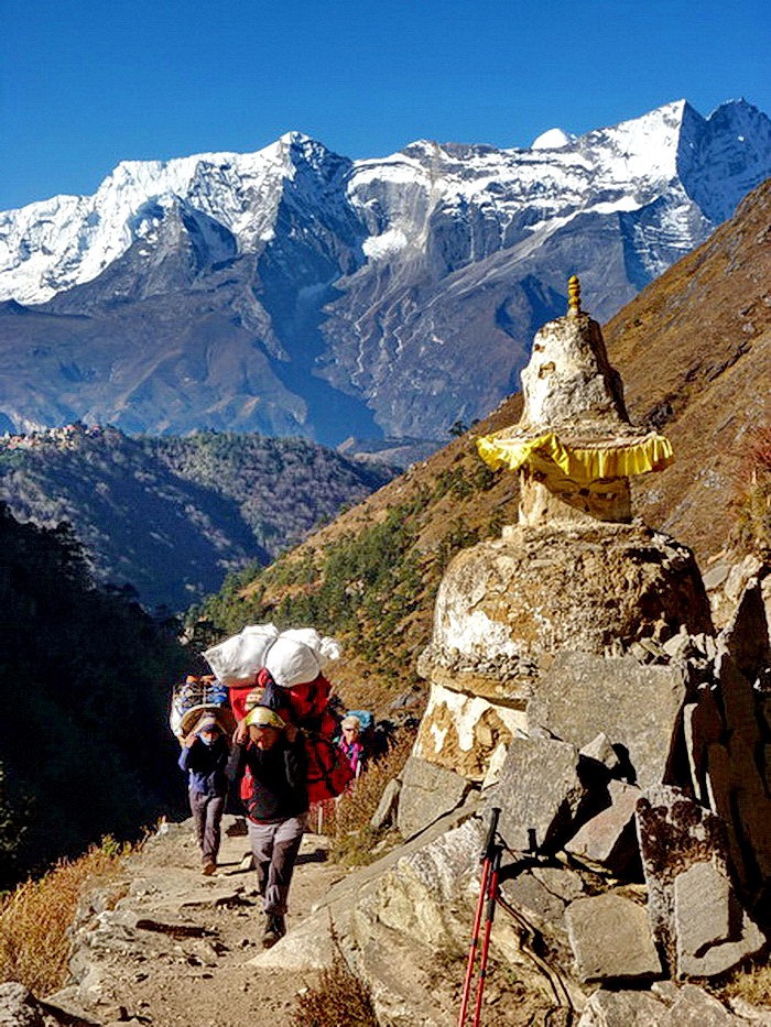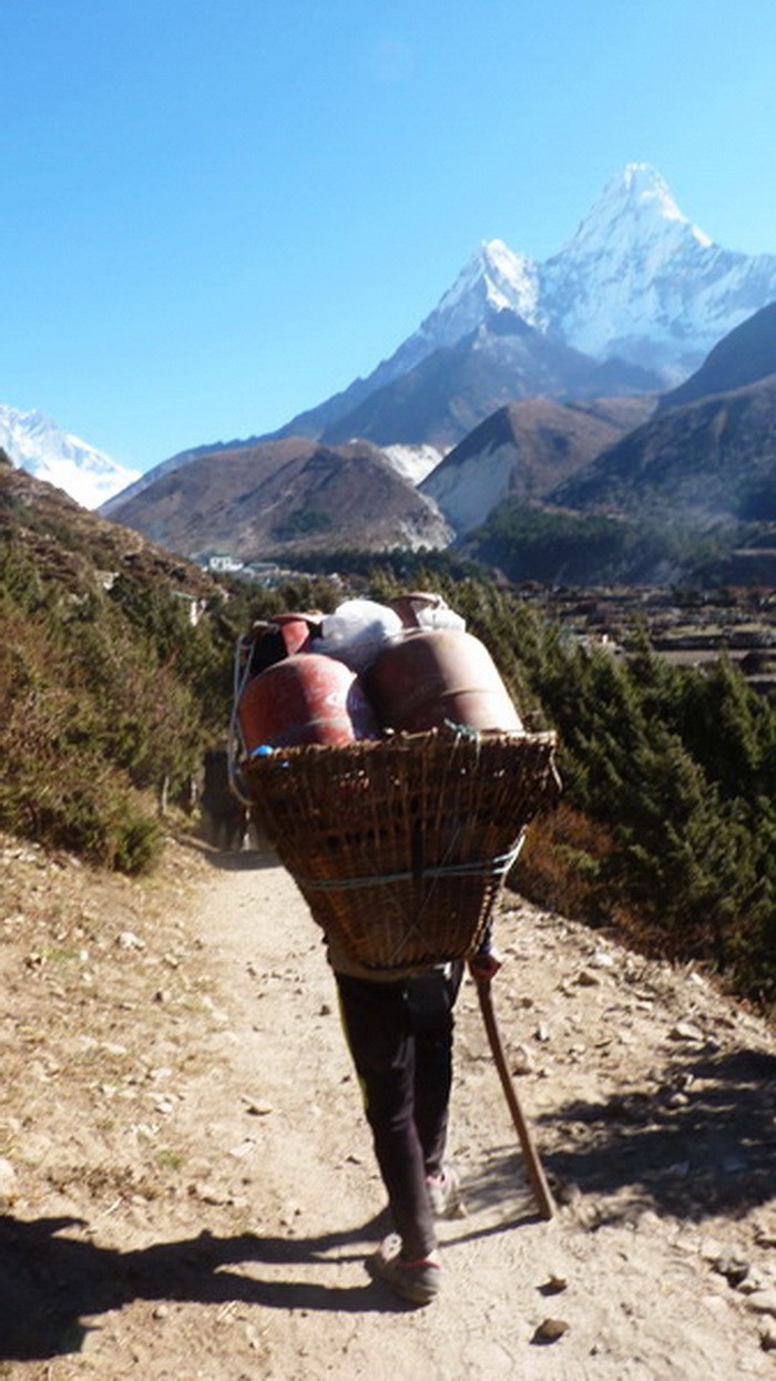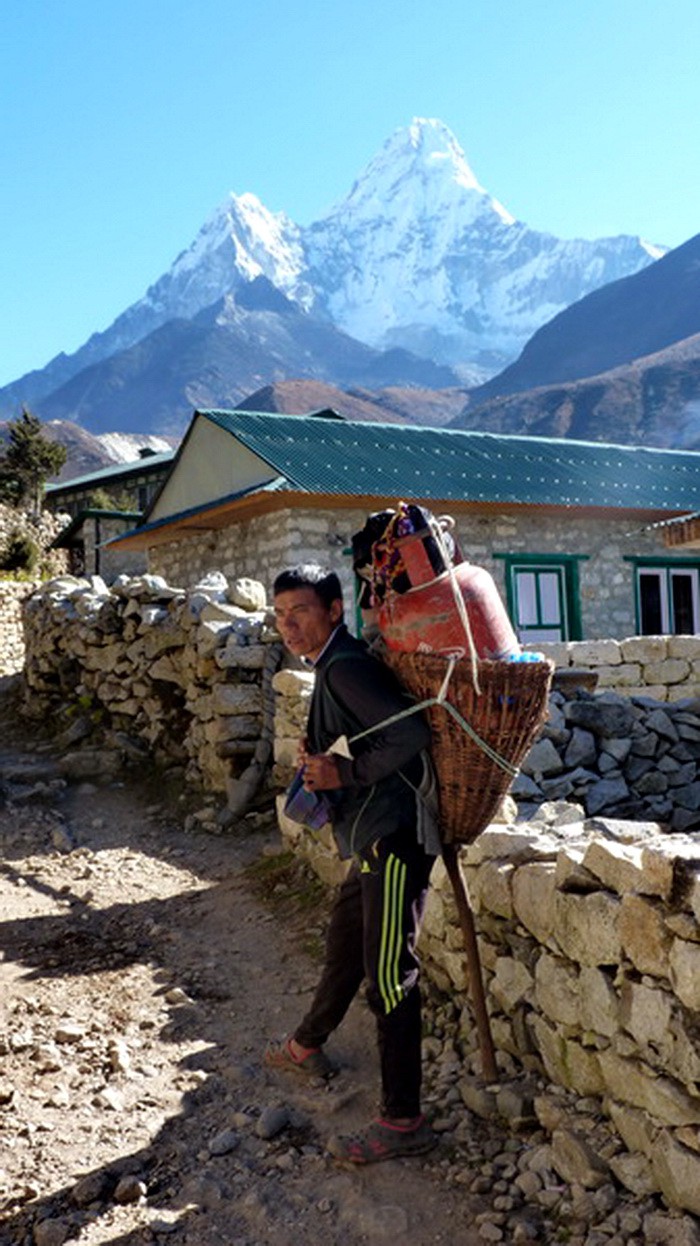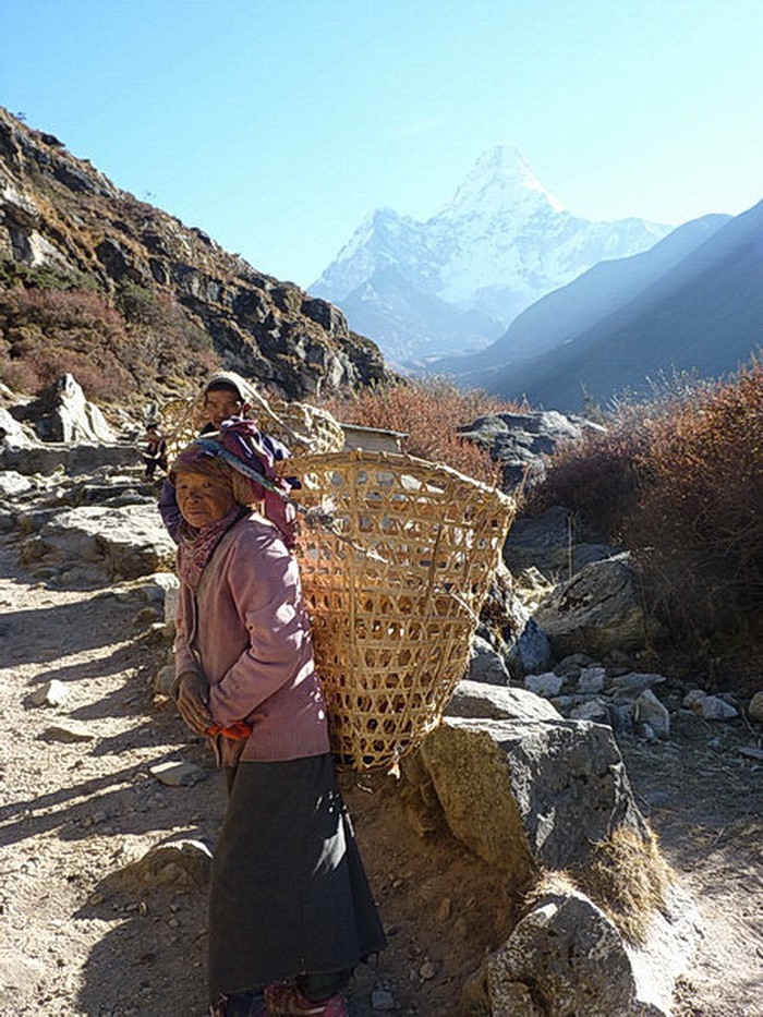 После трёх часов непрерывных подъёмов и спусков входим в крошечное селение Somore (4410 м). Обед Veget curry rice (500 рупий), пьём свой чай с колбаской и продолжаем путь. Припекает. Раздеваюсь. Тропа круто ползёт вверх. Снова одеваюсь. Тропа ешё круче, виды ещё интереснее.