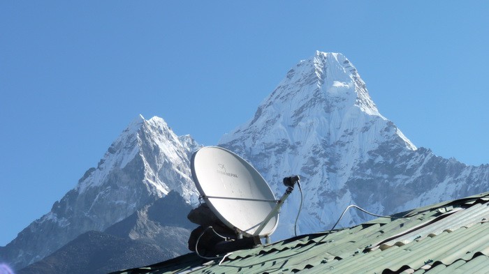 На каждом домике замечаем огромные тарелки — это для сотовой связи. И в каждом малюсеньком домике высоко в горах есть телевизор.