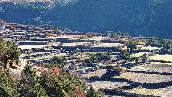 Прощаемся с селением, которое нас приютило. Рано утром ещё прохладно, но шагается удивительно легко — земля промёрзла и даже есть лёд на тропе. Ботинки не скользят по глине. Туристы попадаются в это время редко.