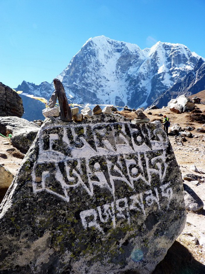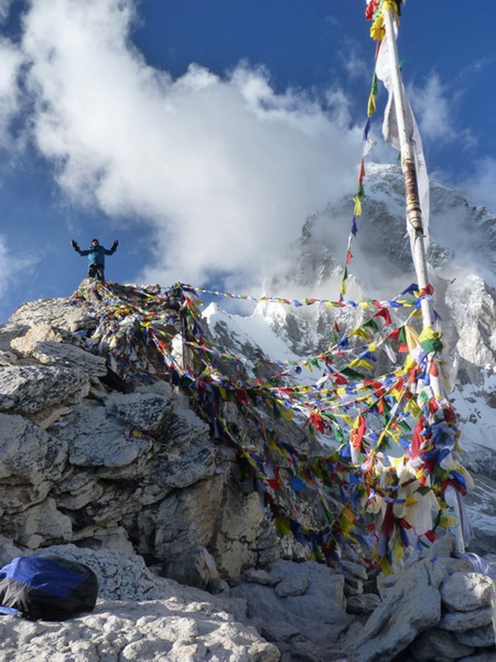 И вот мы уже на вершине Калапатар. Сзади вырисовывается семитысячник Пумори -7164 м. Мне захотелось потрогать самый самый последний камешек Калапатара и станцевать на нём джигу