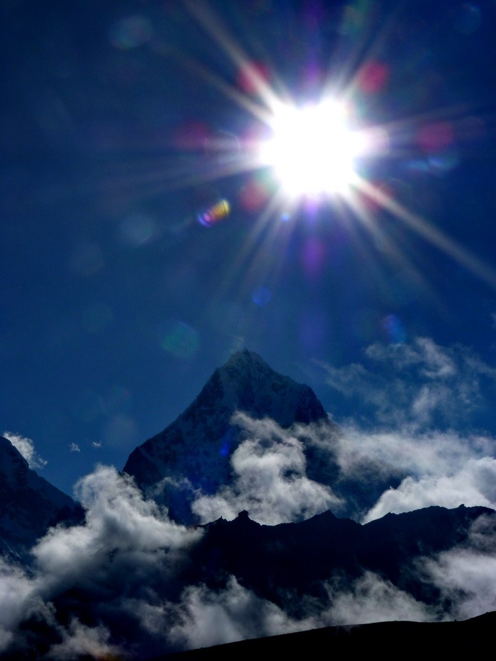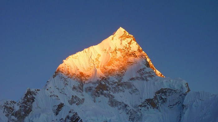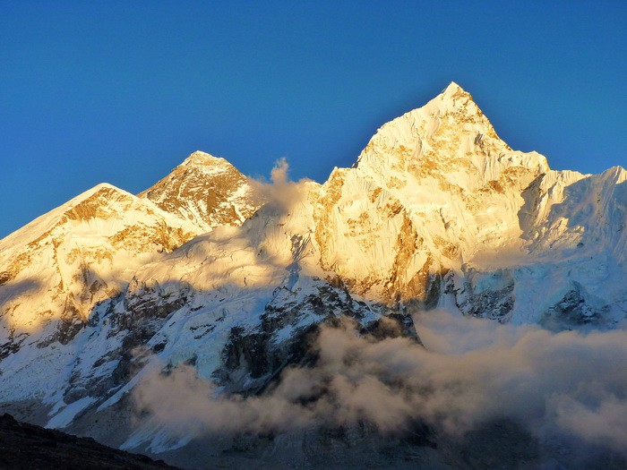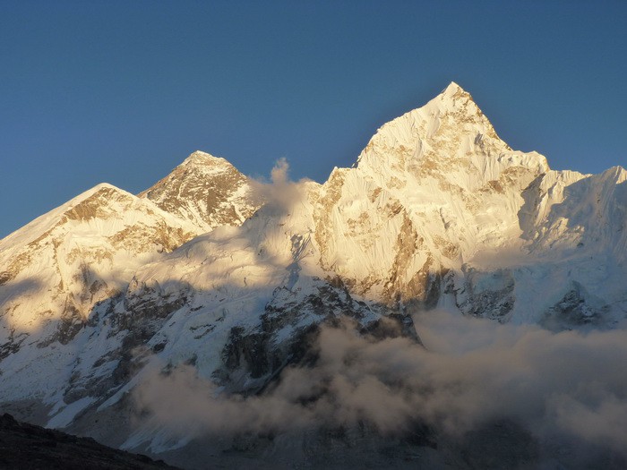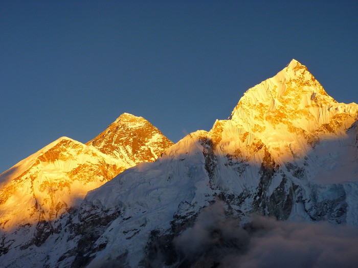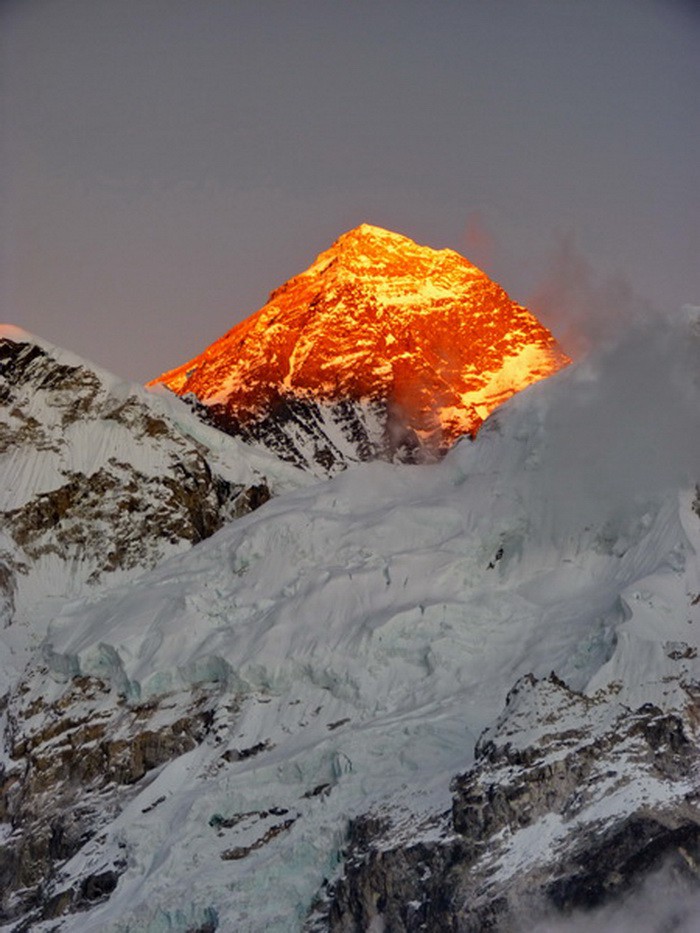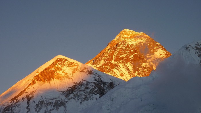 И самый последний луч достаётся высочайшей вершине мира — Эвересту (8848 м).