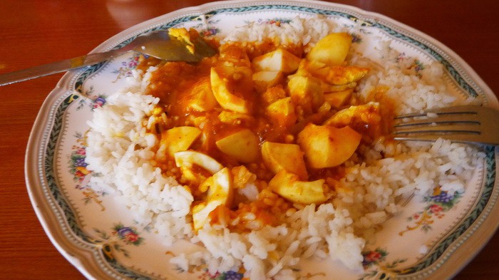 Но стук тарелок приводит меня в реальность — это всего лишь Eggs curry rice аж за 500 рупий!