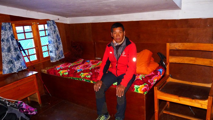 Всё. Теперь только вниз, вниз и вниз. Быстро темнеет. В густых сумерках доходим до лоджии, где встречает гид Нима, который волнуется за нас, не заблудились ли мы. Отмечаем наше благополучное возвращение и расходимся в холодные комнаты, чтобы переночевать на самой большой высоте нашего путешествия (5164 м).