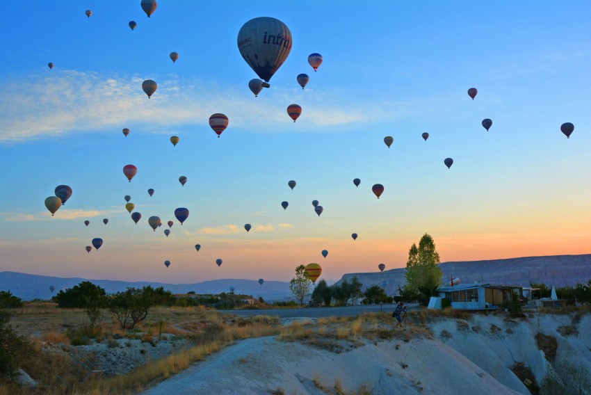 На следующий день мы поднялись рано, чтобы наблюдать с крыши нашего отеля полёт воздушных шаров. Воздухоплавание стало визитной карточкой Каппадокии. Площадки для взлета воздушных шаров расположены на окраинах Гёреме. Утром на рассвете с многочисленных площадок вокруг Гёреме в небо одновременно взмывают десятки воздушных шаров.