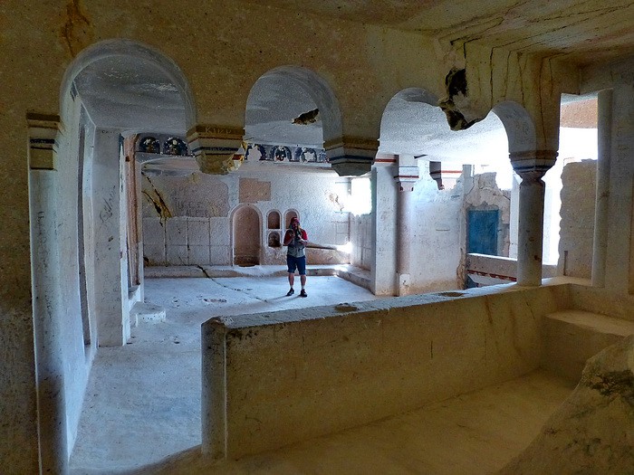 Сегодня по плану посещение окрестностей деревушки Чавушин. После завтрака выезжаем из Гёреме на рейсовом автобусе и через 15 минут мы на месте. Рядом с остановкой находится христианский храм в скалах.