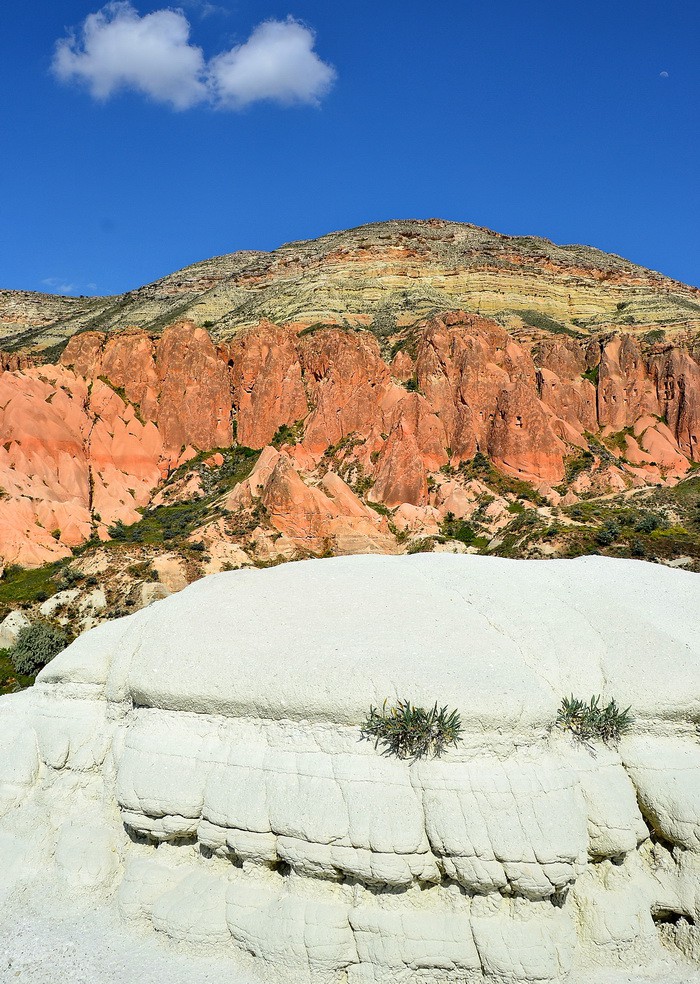 и белые конусы травертиновых скал.