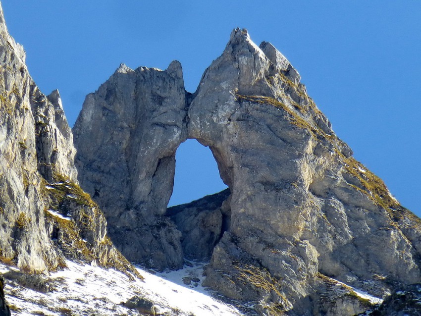 Две скалы в изгибе сомкнулись вершинами, образовав огромную дыру – окно в небо.