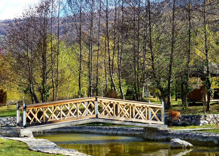 В стороне от Плава на берегу озера расположены эко поселения для туристов с деревянными домиками, ресторанчиками, мостиками и лужайками.