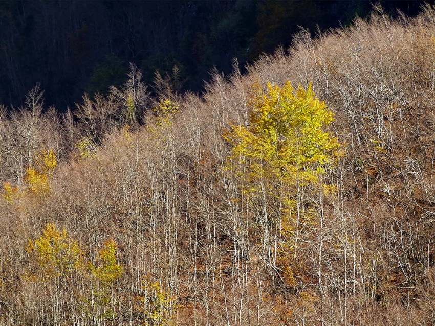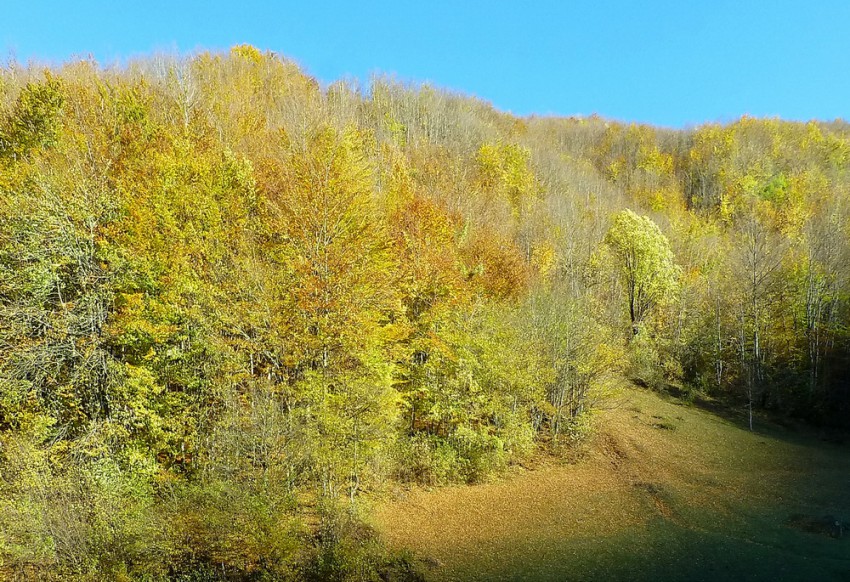 Дорога вскоре приводит нас в буковый лес, который ещё не успел сбросить осенний наряд.