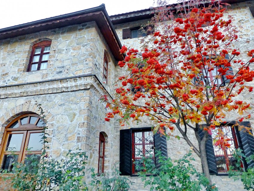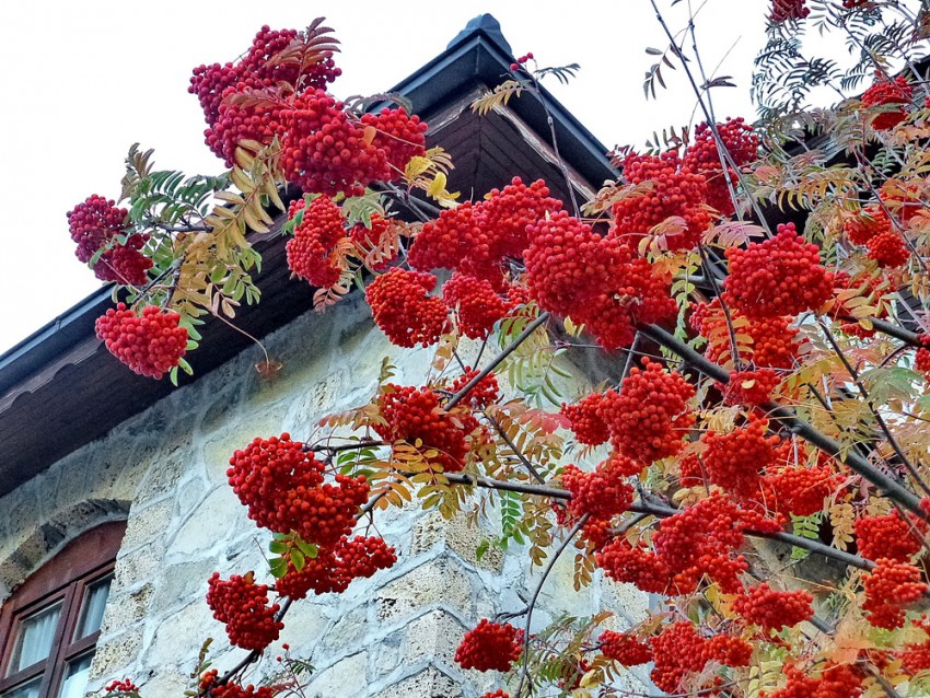 Около монастыря краснеют ягоды на рябине.