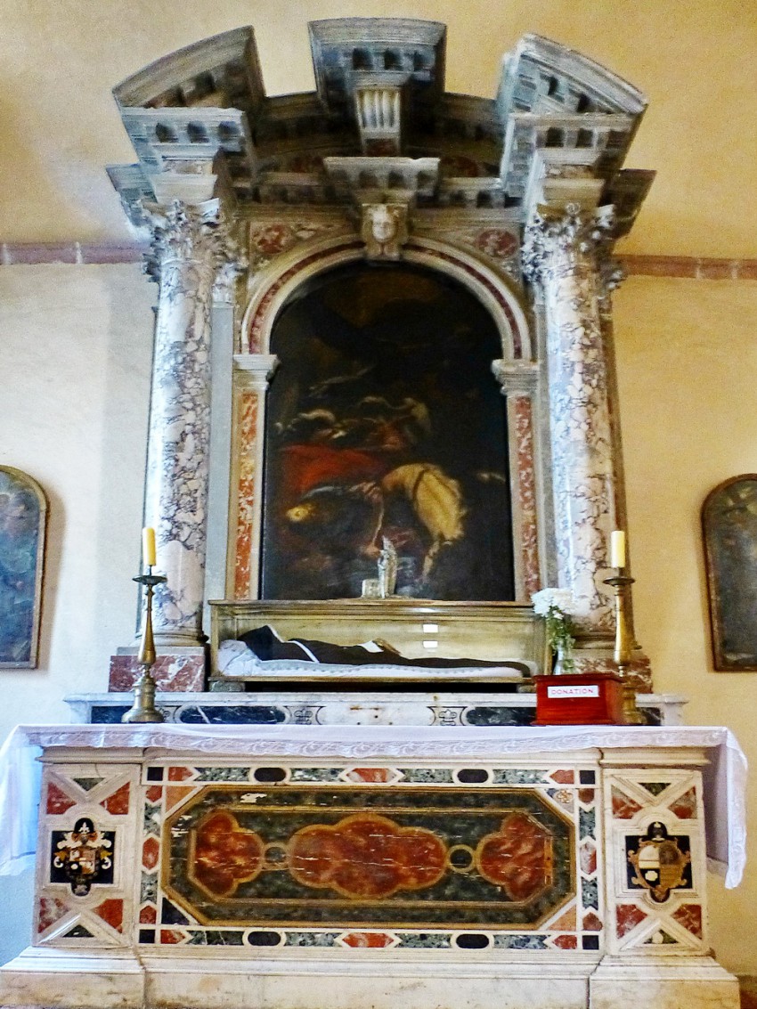 В церкви хранятся деревянные распятия из XIV века, два алтаря из разноцветного мрамора и мощи Блаженной Озаны, одной из покровительниц города, жившей в XVI веке.