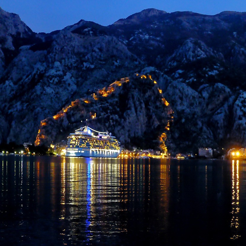 В 19:00 над Бока Которска раздался длинный гудок и лайнер отчалил от пристани.