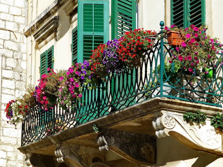 Хоть улочки и узенькие, но всё же в них заглядывает солнце и, поэтому, здесь растут разные цветы.